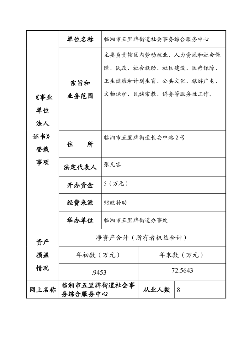2023年度事业单位法人年度报告书—临湘市五里牌街道社会事务综合服务中心