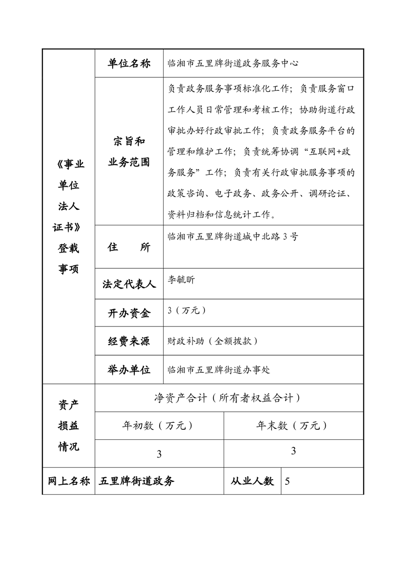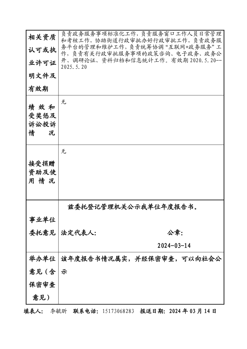 2023年度事业单位法人年度报告书—临湘市五里牌街道政务服务中心