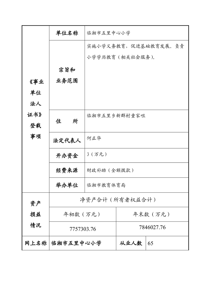 2023年度事业单位法人年度报告书—临湘市五里中心小学
