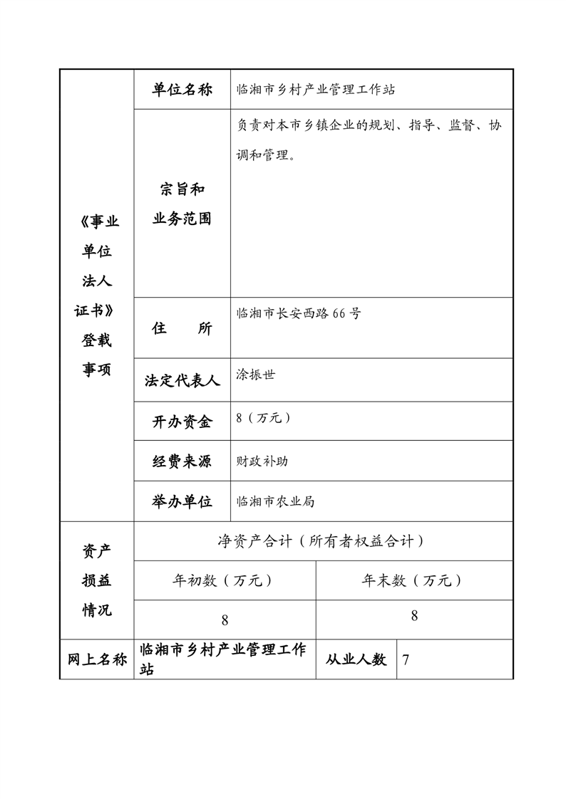 2023年度事业单位法人年度报告书—临湘市乡村产业管理工作站