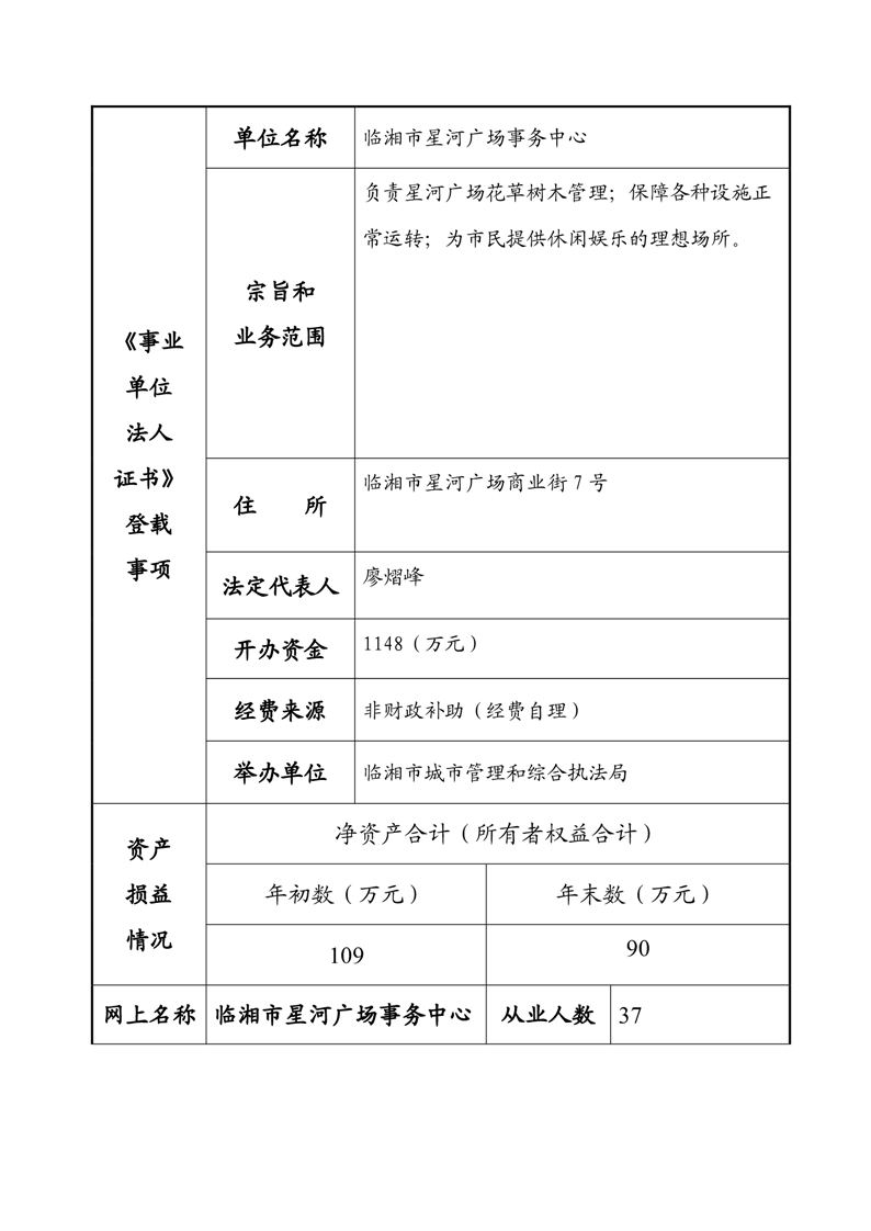 2023年度事业单位法人年度报告书—临湘市星河广场事务中心