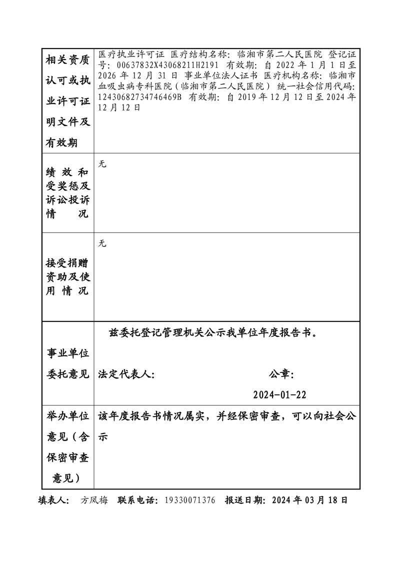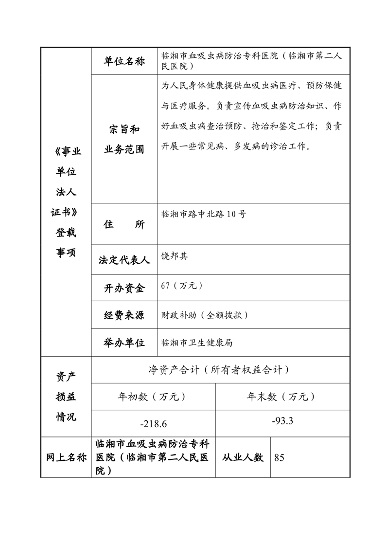 2023年度事业单位法人年度报告书—临湘市血吸虫病防治专科医院