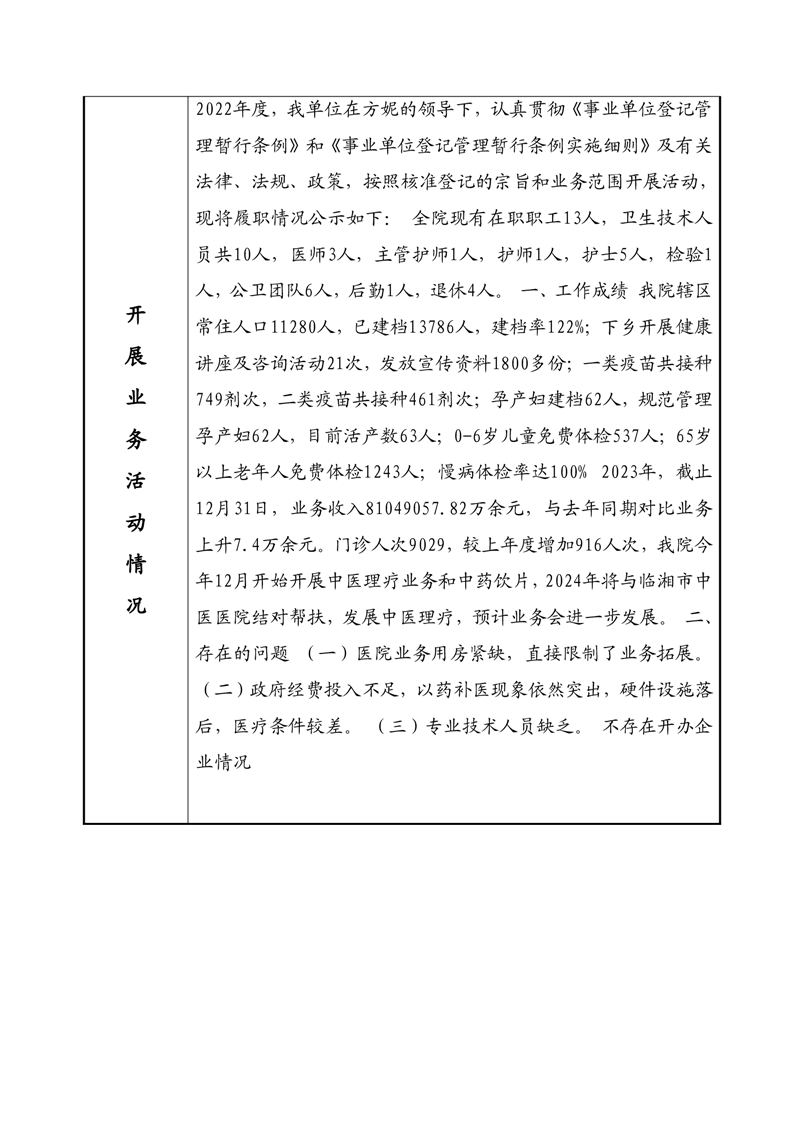 2023年度事业单位法人年度报告书—临湘市羊楼司镇文白卫生院