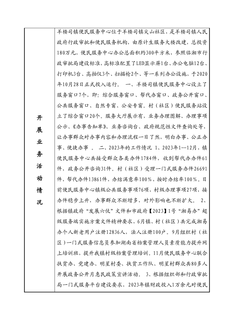 2023年度事业单位法人年度报告书—临湘市羊楼司镇政务服务中心