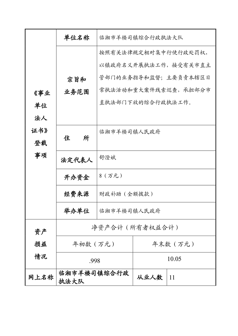 2023年度事业单位法人年度报告书—临湘市羊楼司镇综合行政执法大队