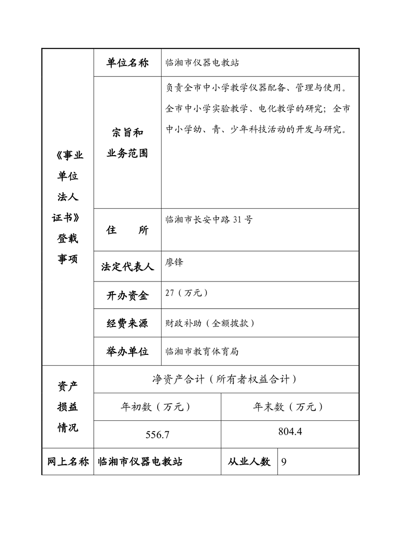 2023年度事业单位法人年度报告书—临湘市仪器电教站