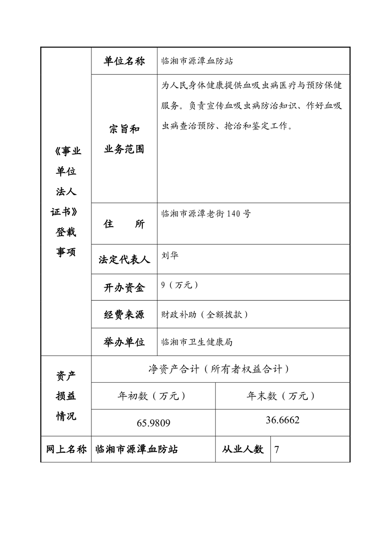 2023年度事业单位法人年度报告书—临湘市源潭血防站