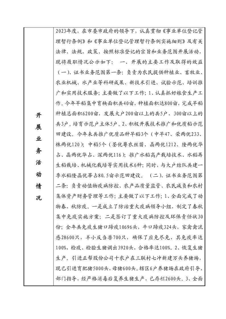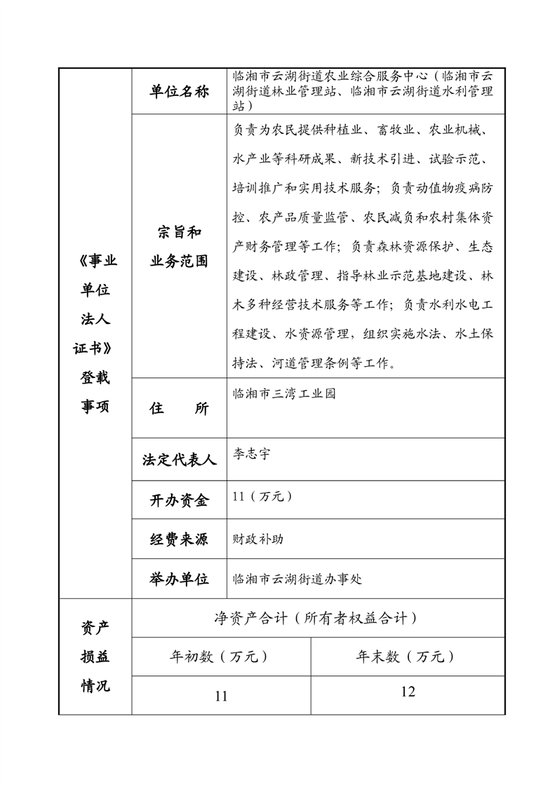 2023年度事业单位法人年度报告书—临湘市云湖街道农业综合服务中心
