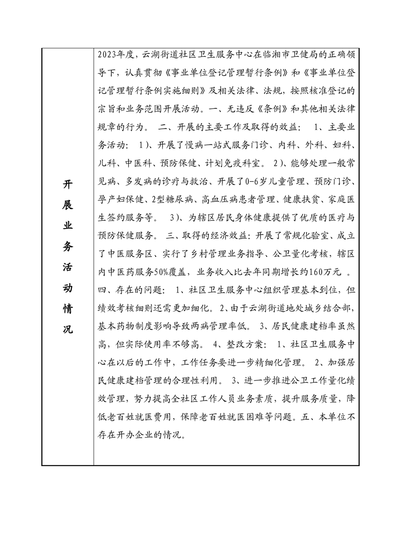 2023年度事业单位法人年度报告书—临湘市云湖街道社区卫生服务中心
