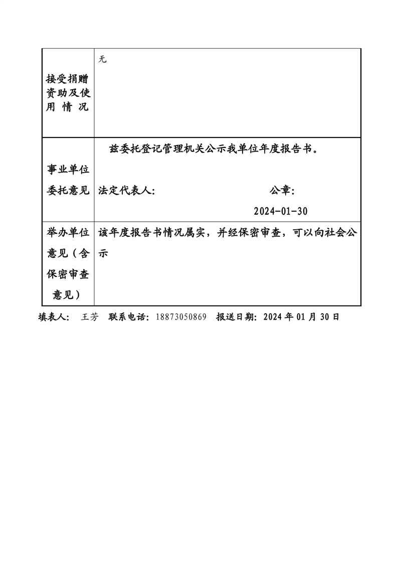 事业单位2023年度报告公示