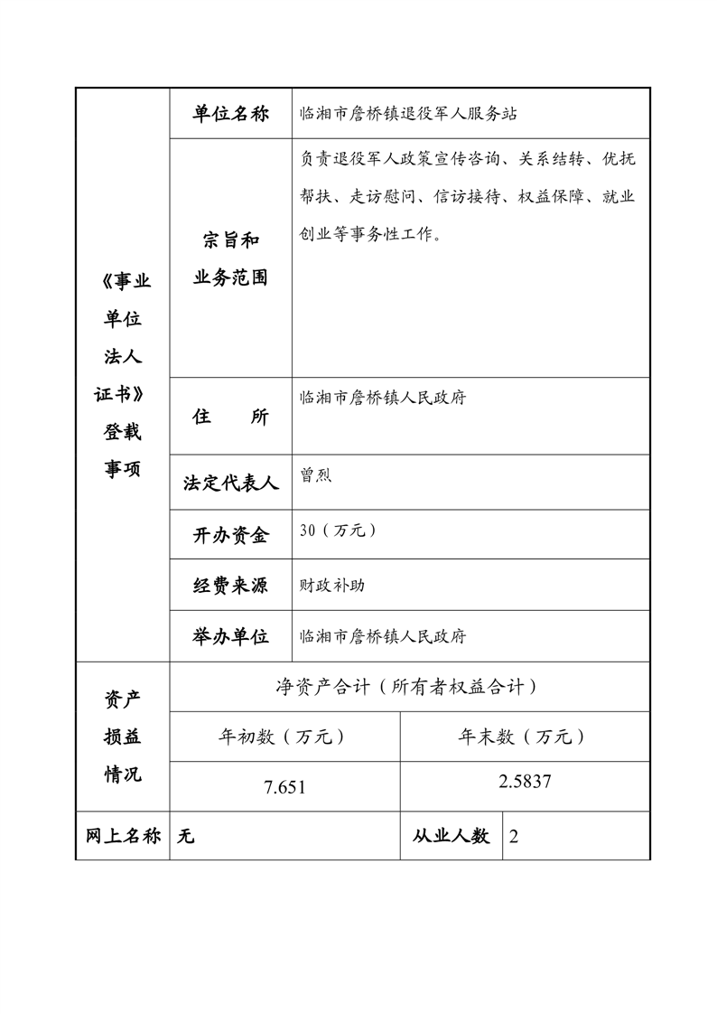 2023年度事业单位法人年度报告书—l临湘市詹桥镇退役军人服务站