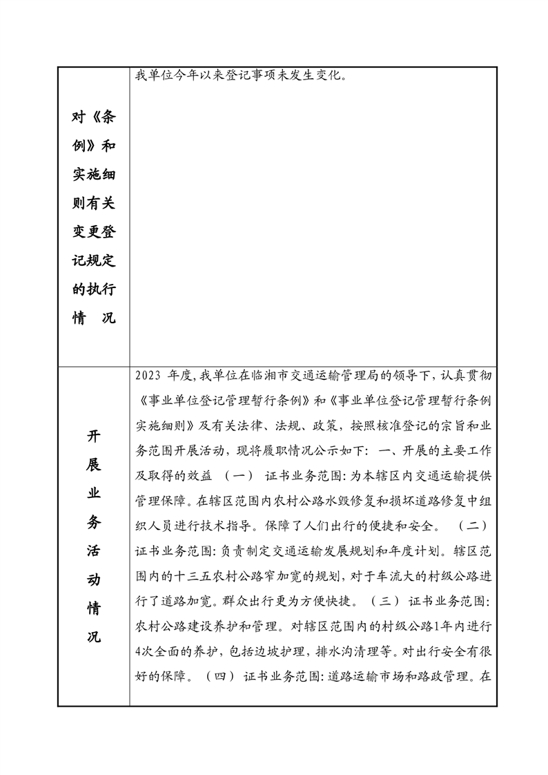2023年度事业单位法人年度报告书—临湘市长安交通运输服务站