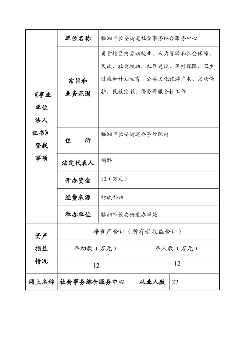 2023年度事业单位法人年度报告书—临湘市长安街道社会事务综合服务中心