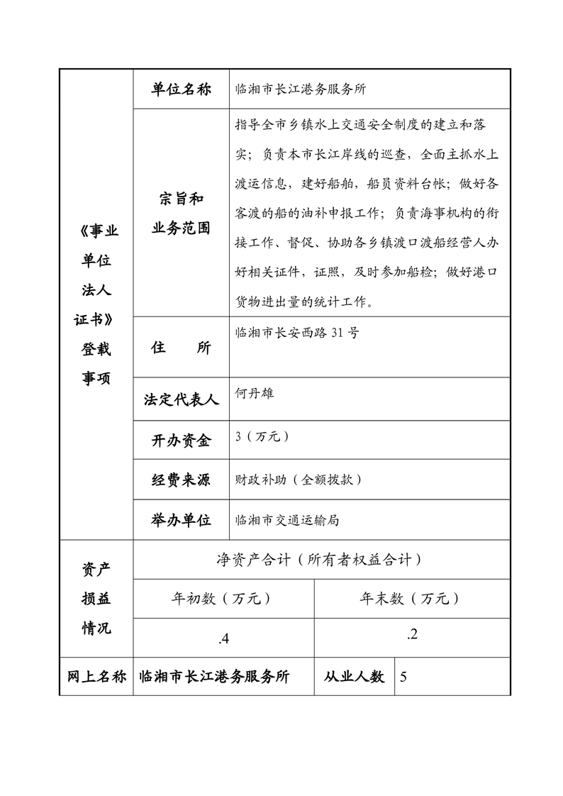 2023年度事业单位法人年度报告书—临湘市长江港务服务所