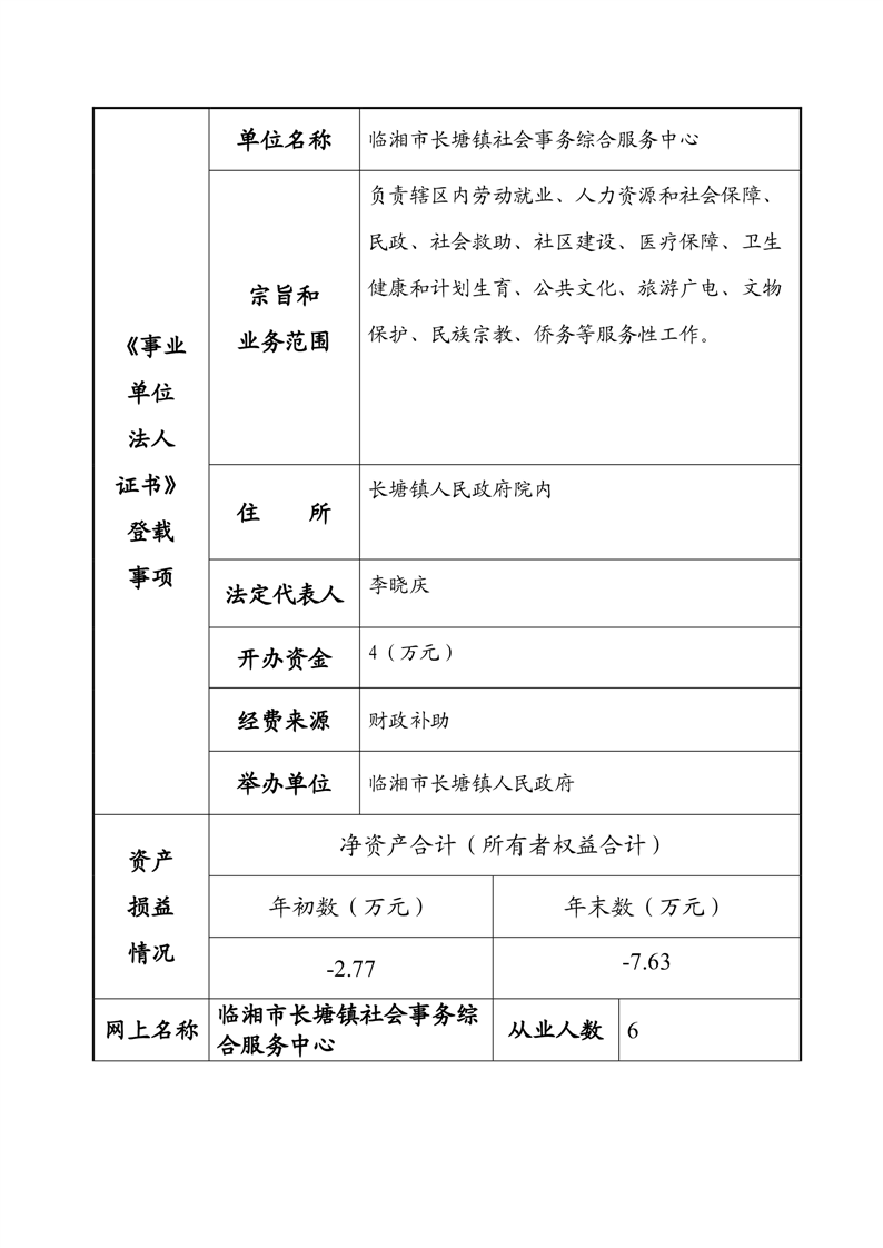 2023年度事业单位法人年度报告书—临湘市长塘镇社会事务综合服务中心