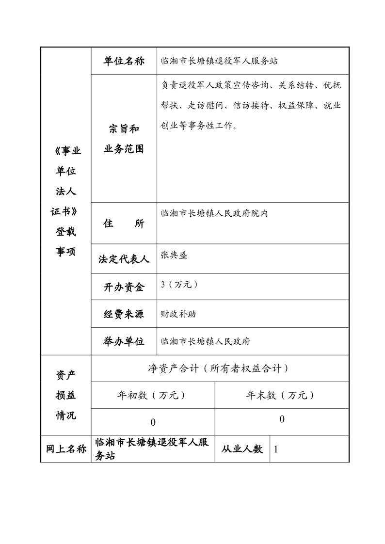 2023年度事业单位法人年度报告书—临湘市长塘镇退役军人服务站