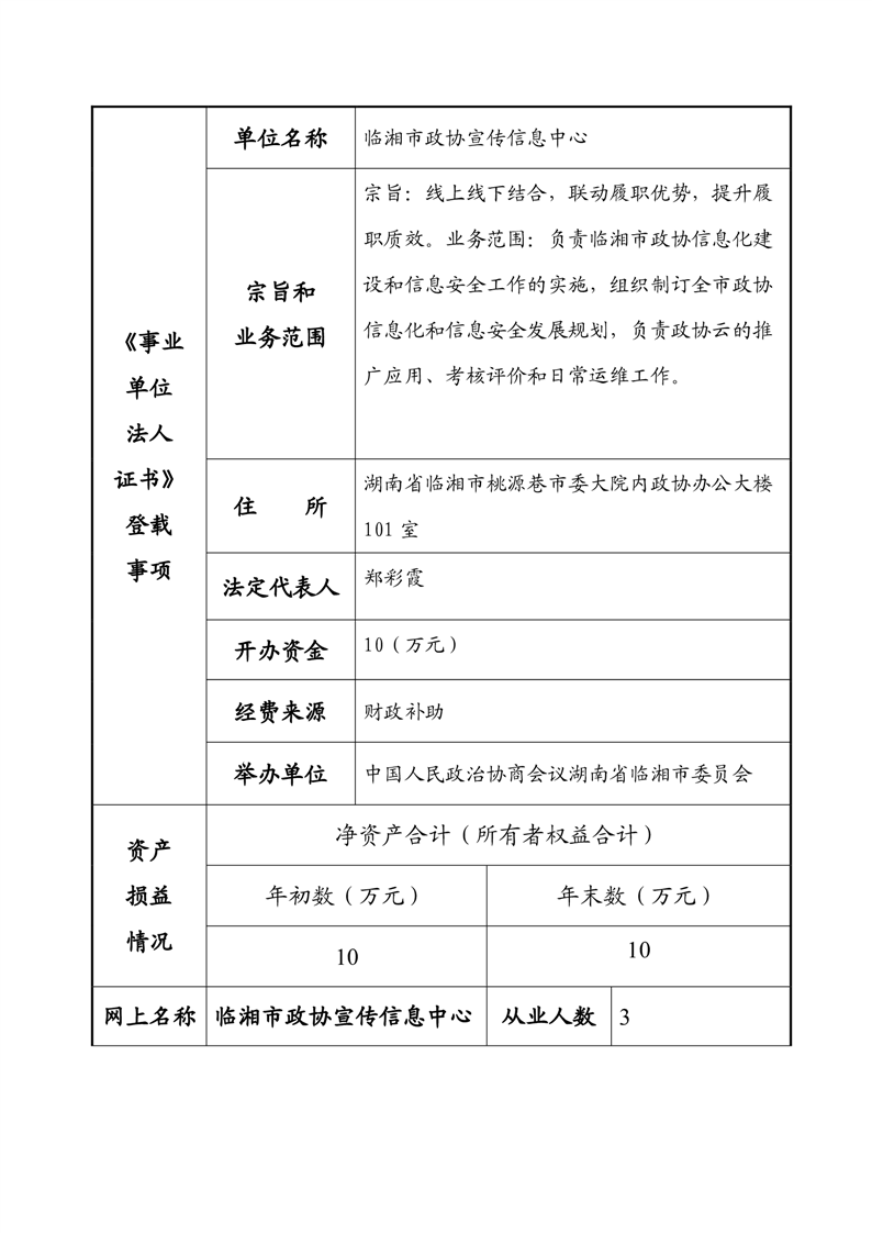 2023年度事业单位法人年度报告书—临湘市政协宣传信息中心