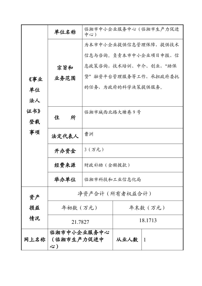 2023年度事业单位法人年度报告书—临湘市中小企业服务中心
