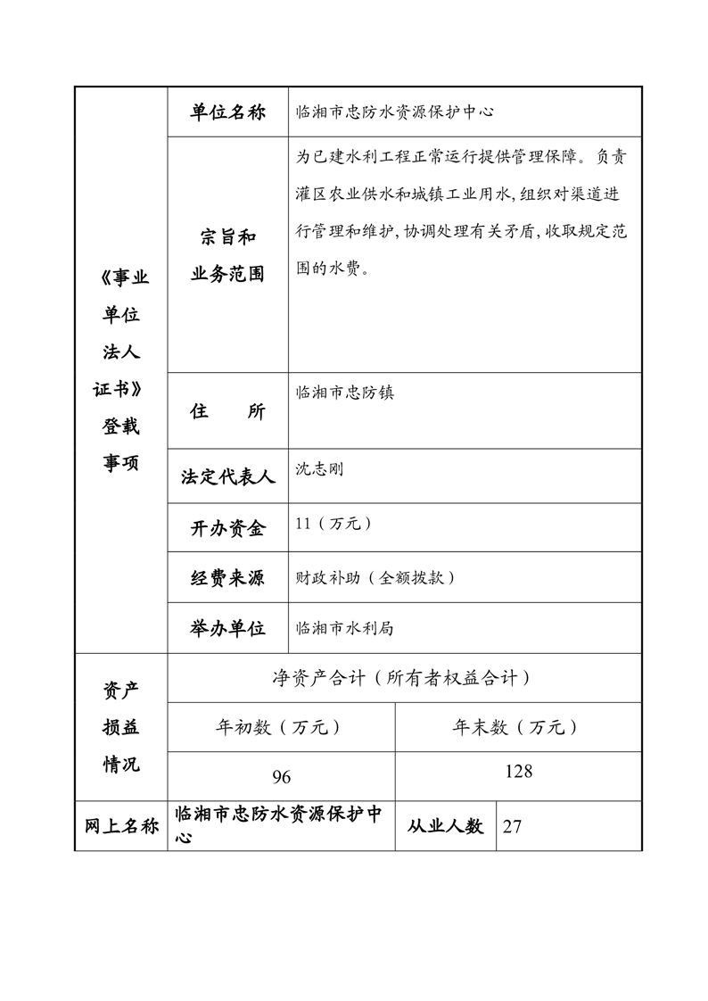 2023年度事业单位法人年度报告书—临湘市忠防水资源保护中心