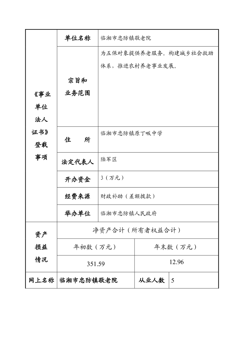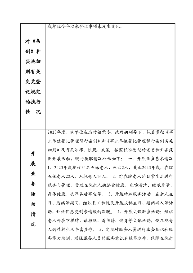 2023年度事业单位法人年度报告书—临湘市忠防镇敬老院