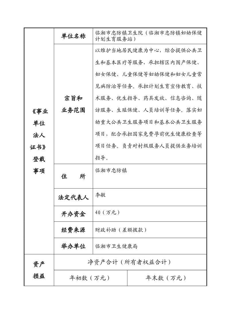 2023年度事业单位法人年度报告书—临湘市忠防镇卫生院