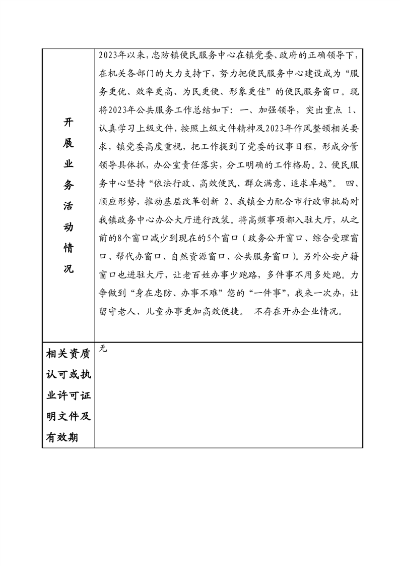 2023年度事业单位法人年度报告书—临湘市忠防镇政务服务中心