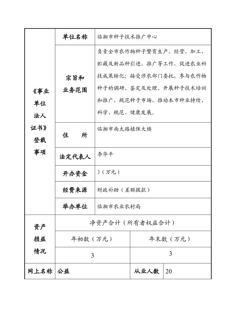 2023年度事业单位法人年度报告书—临湘市种子技术推广中心