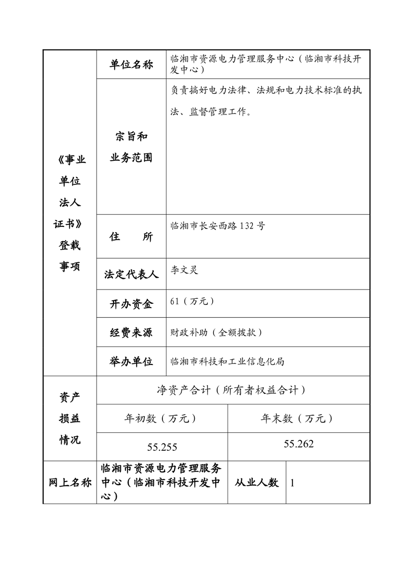 2023年度事业单位法人年度报告书—临湘市资源电力管理服务中心