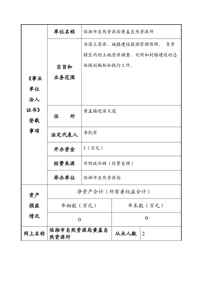 2023年度事业单位法人年度报告书—临湘市自然资源局黄盖自然资源所