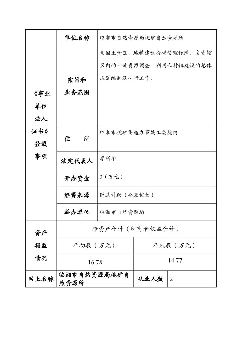 2023年度事业单位法人年度报告书—临湘市自然资源局桃矿自然资源所