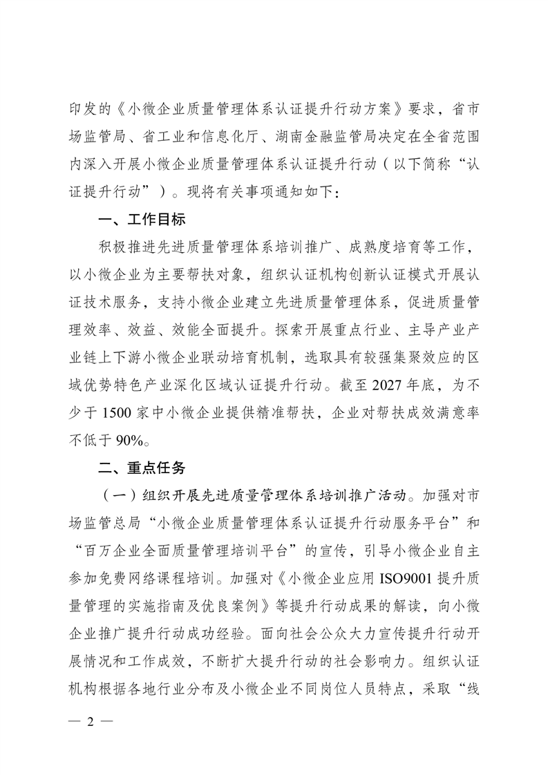 《关于深入开展小微企业质量管理体系认证提升行动的通知》