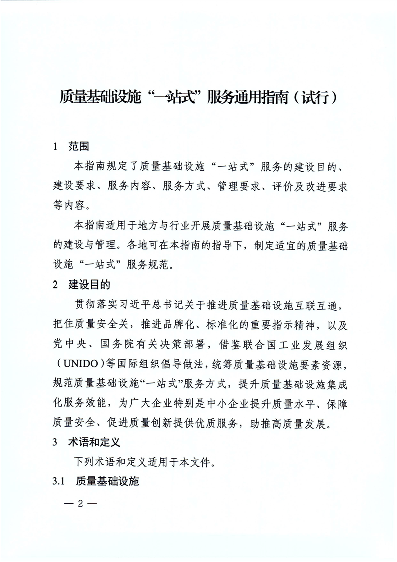 《质量基础设施“一站式”服务通用指南(试行)》