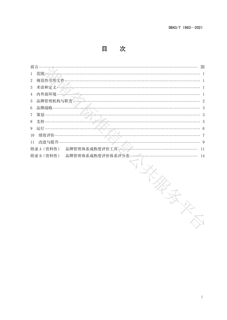 湖南省地方标准DB43_T 1983—2021 品牌管理体系 要求与实施