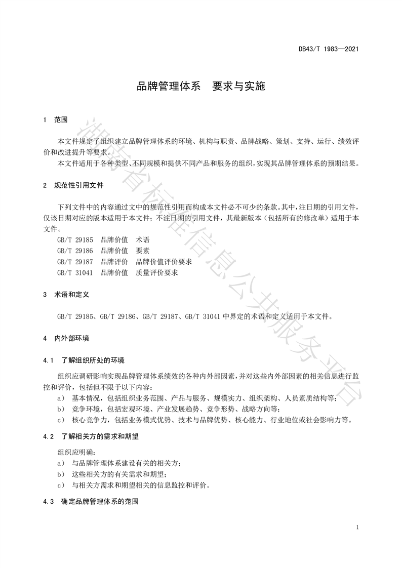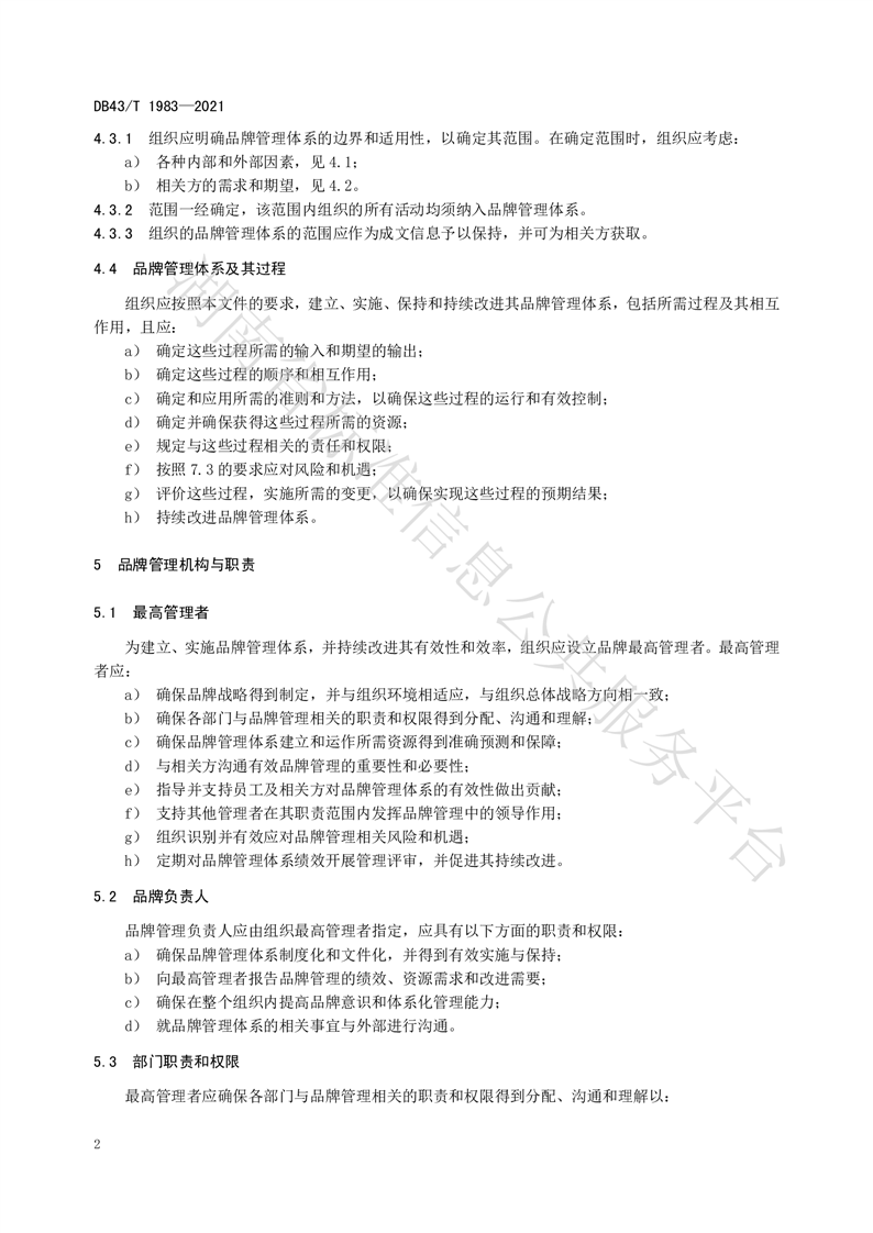 湖南省地方标准DB43_T 1983—2021 品牌管理体系 要求与实施-湖南省市场监督管理局.pdf
