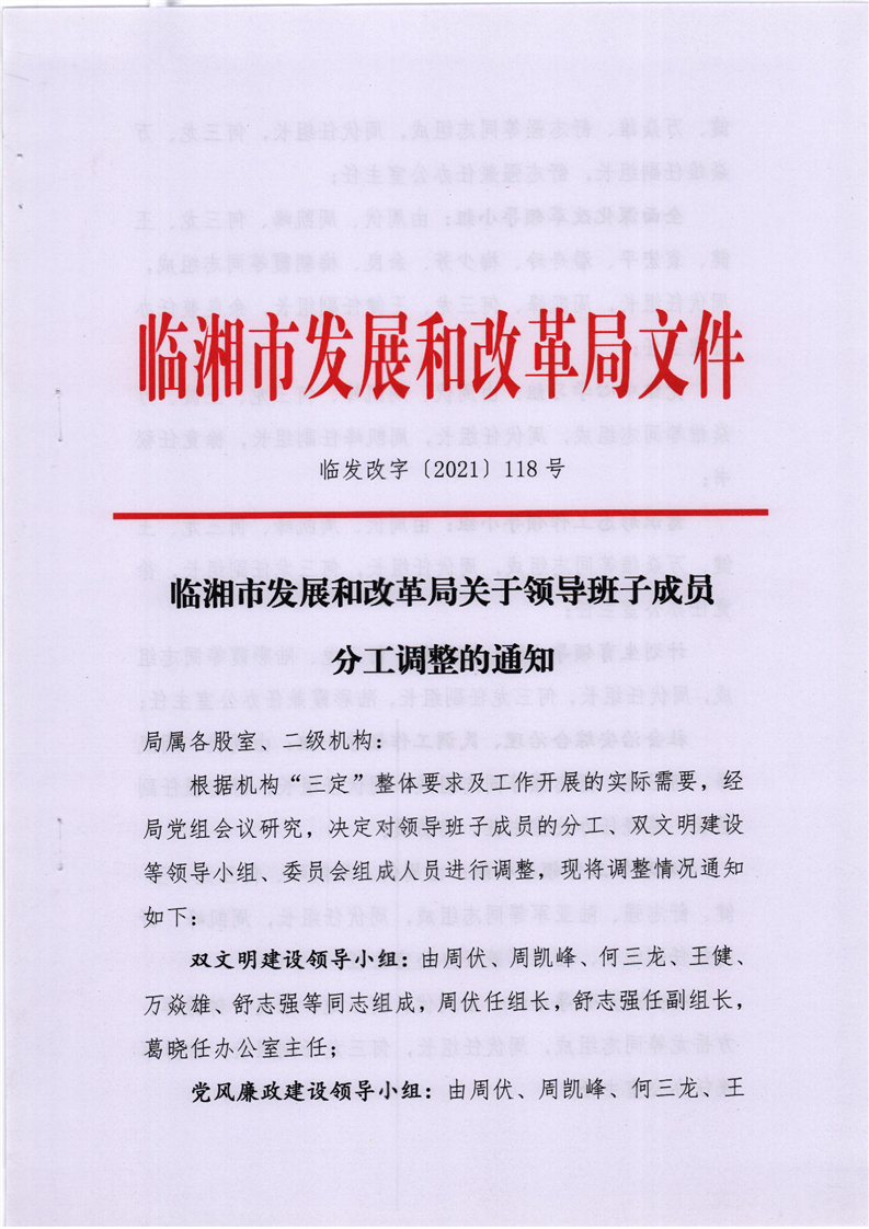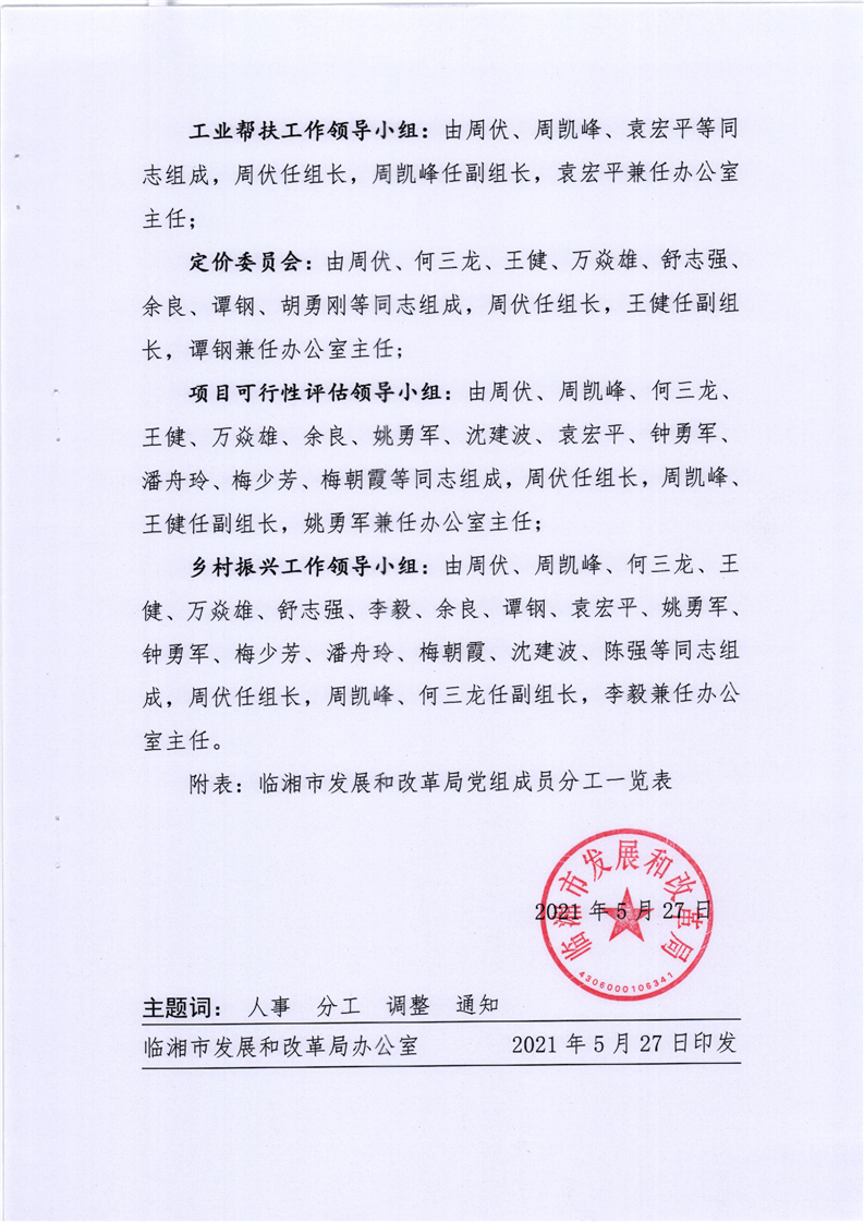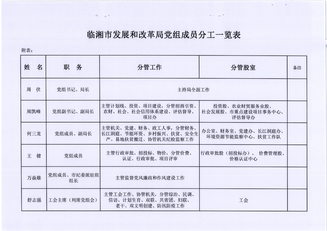 临湘市发展和改革局关于领导班子成员分工调整的通知
