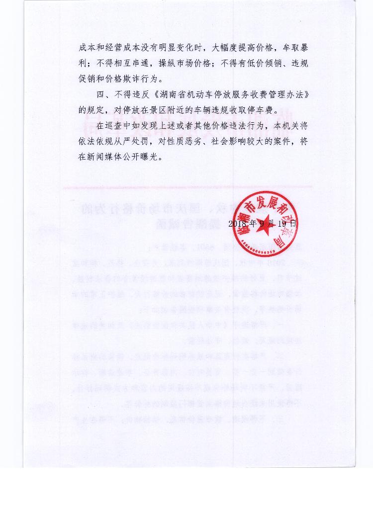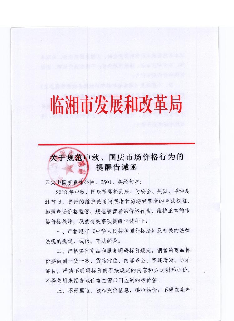 关于规范中秋、国庆市场价格行为的提醒告诫函