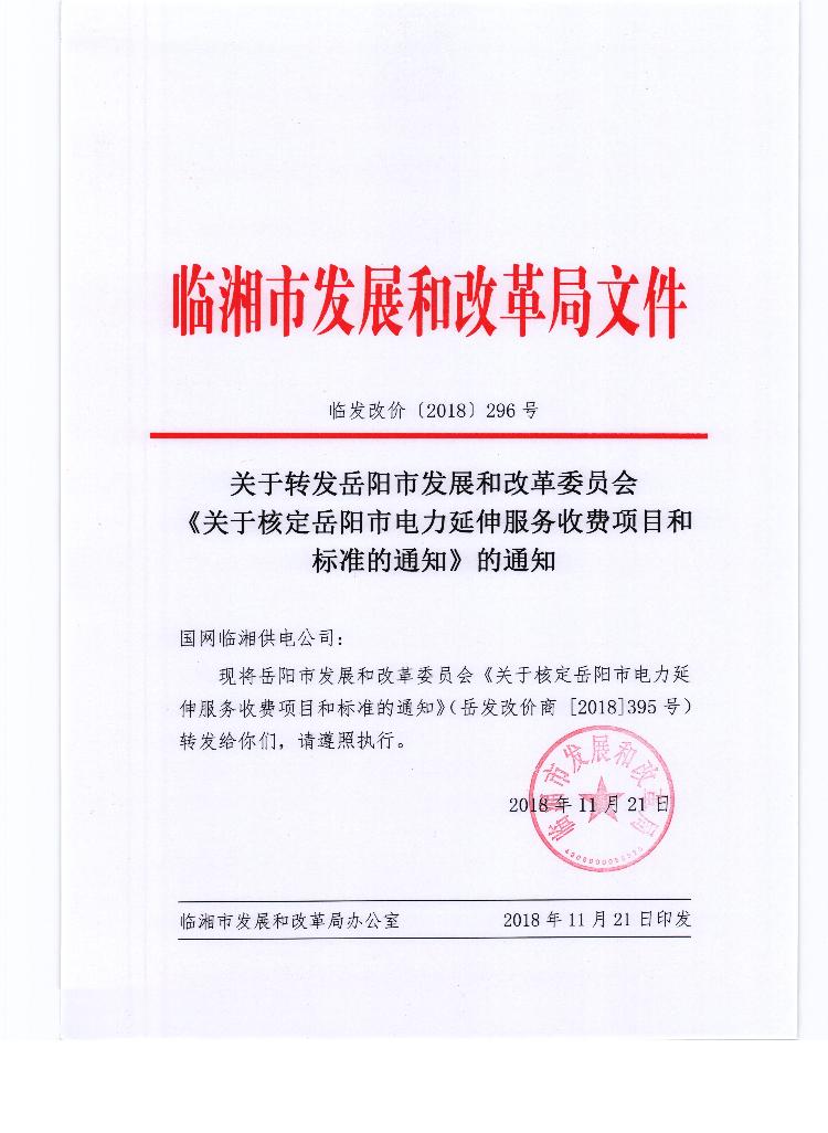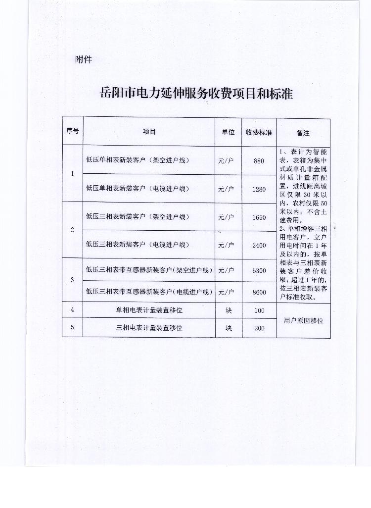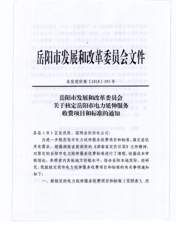 关于转发岳阳市发展和改革委员会《关于核定岳阳市电力延伸服务收费项目和标准的通知》的通知