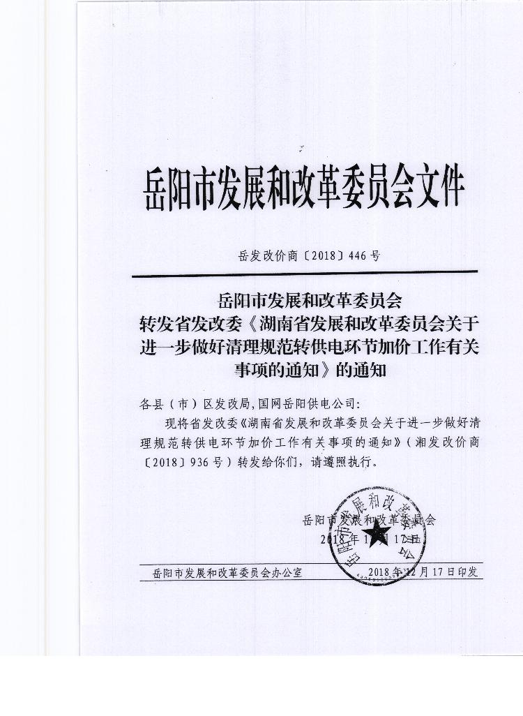 关于转发省发改委《湖南省发展和改革委员会关于进一步做好清理规范转供电环节加价工作有关事项的通知》的通知
