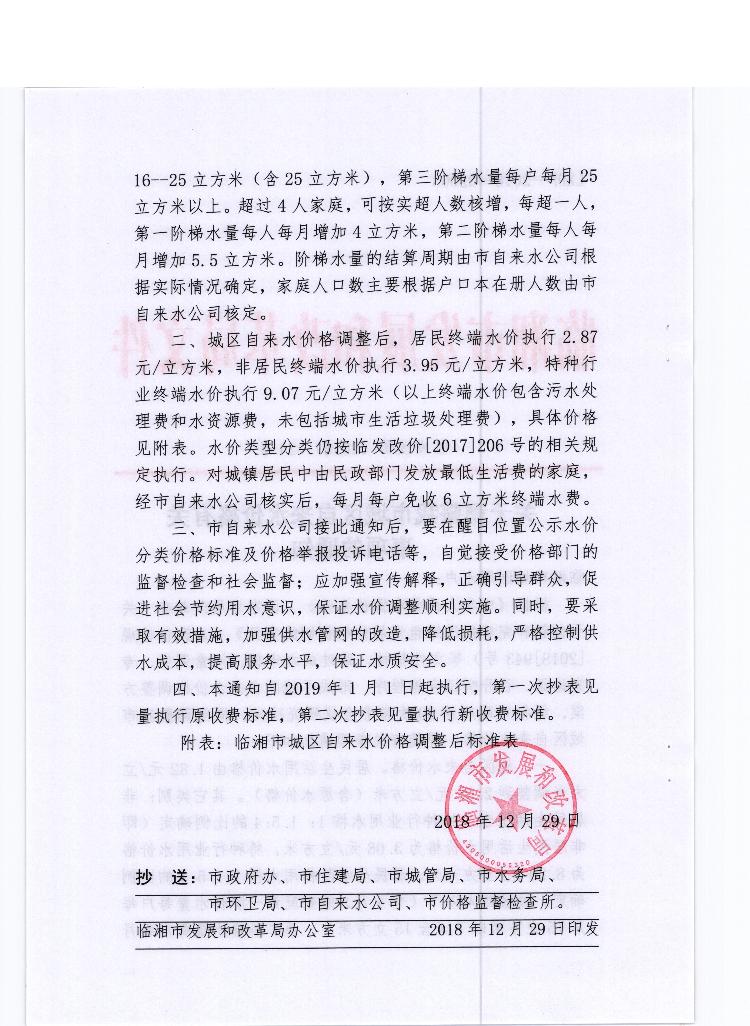 关于调整我市城区自来水价格有关事项的通知