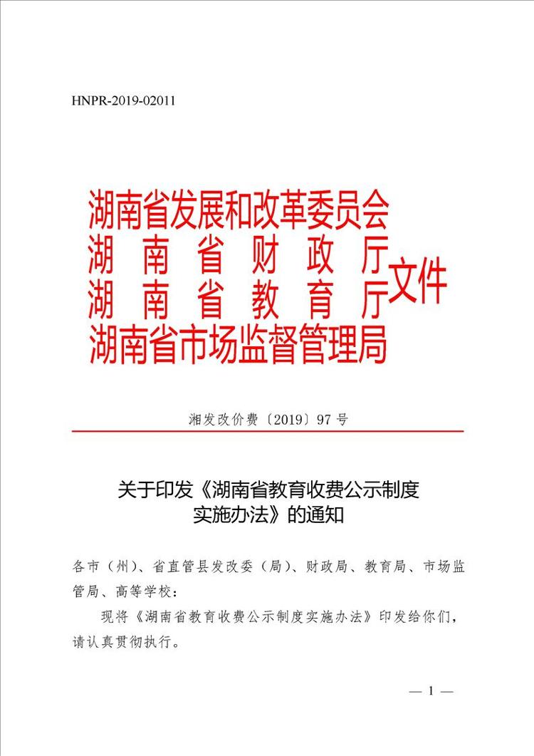 关于印发《湖南省教育收费公示制度实施办法》的通知