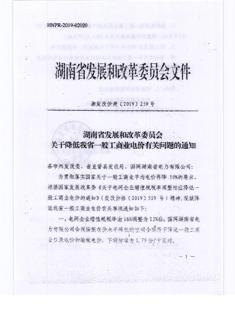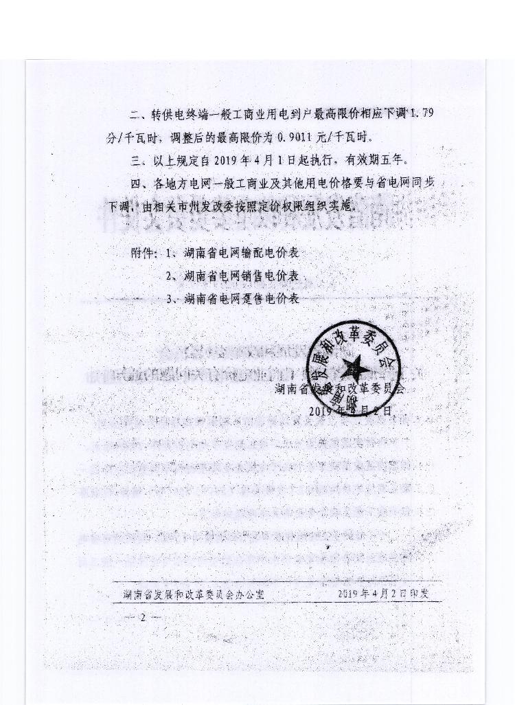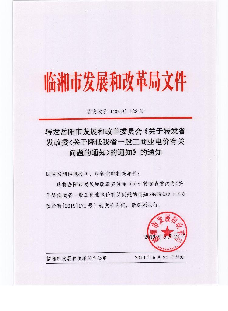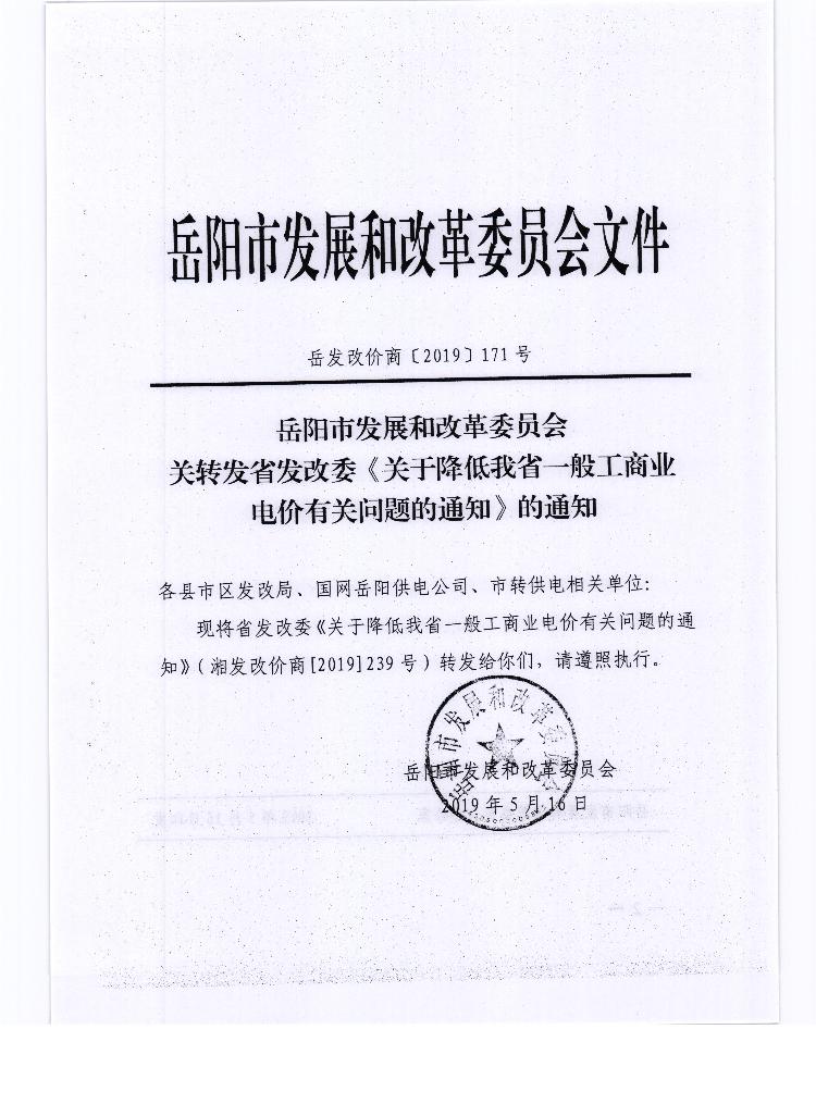 转发岳阳市发展和改革委员会《关于转发省发改委关于降低我省一般工商业电价有关问题的通知的通知》的通知