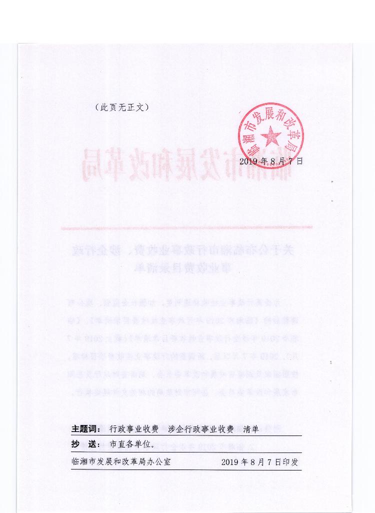 关于公布临湘市行政事业收费、涉企行政事业收费目录清单的公告