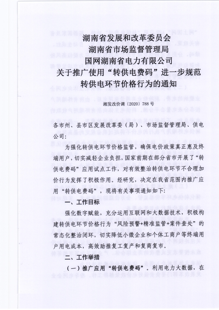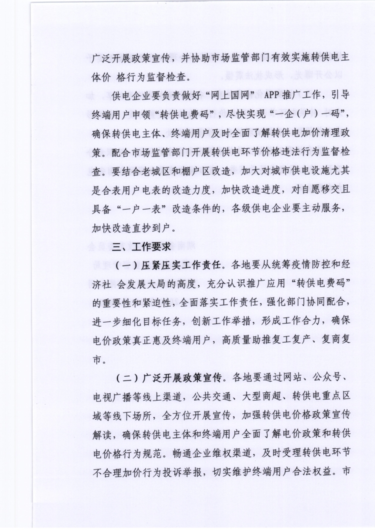 关于推广使用“转供电费码”进一步规范专供电环节价格行为的通知
