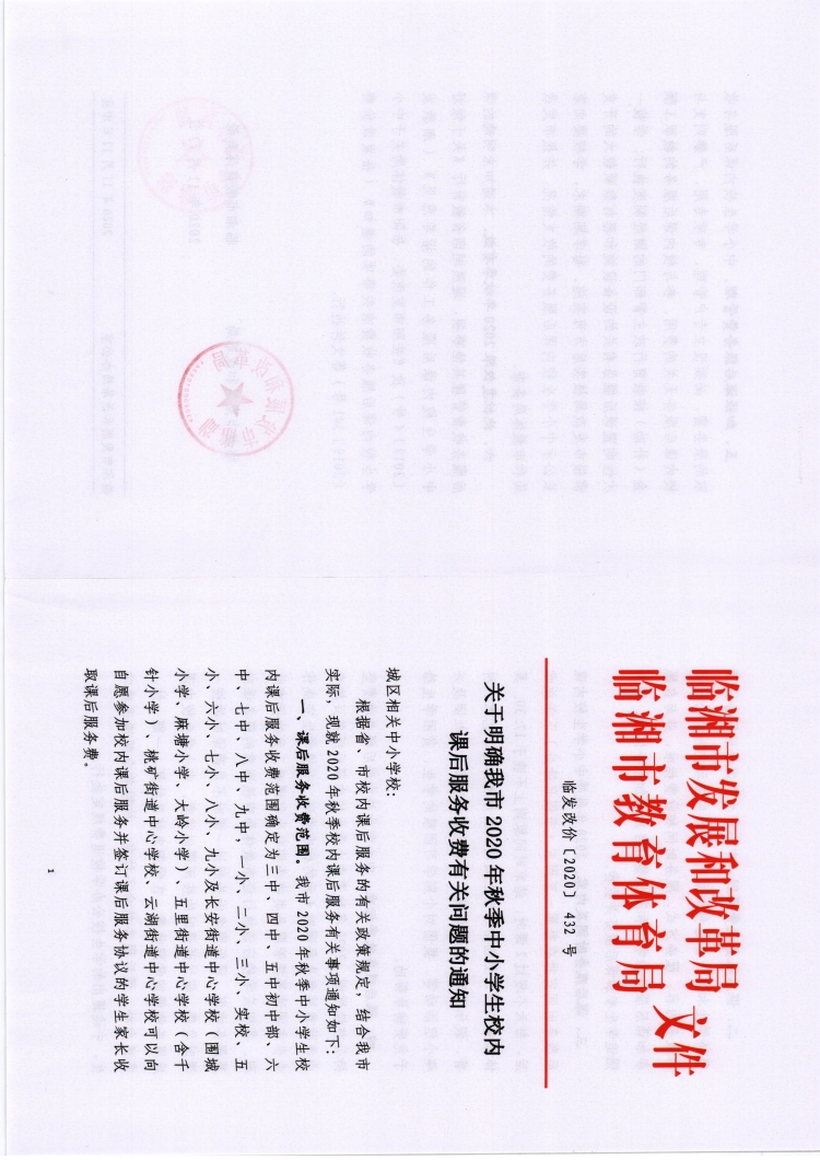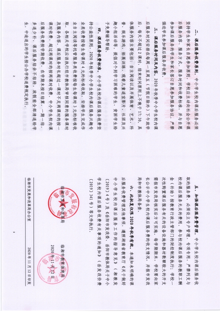 关于明确我市2020年秋季中小学校内课后服务收费有关问题的通知