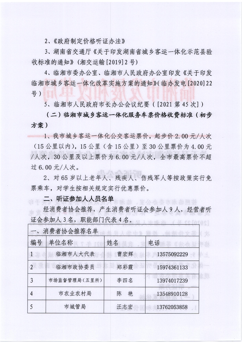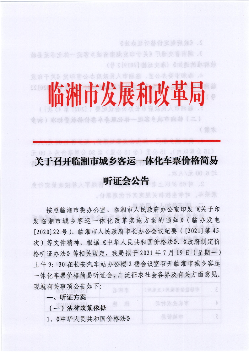 关于召开临湘市城乡客运一体化车票价格简易听证会公告