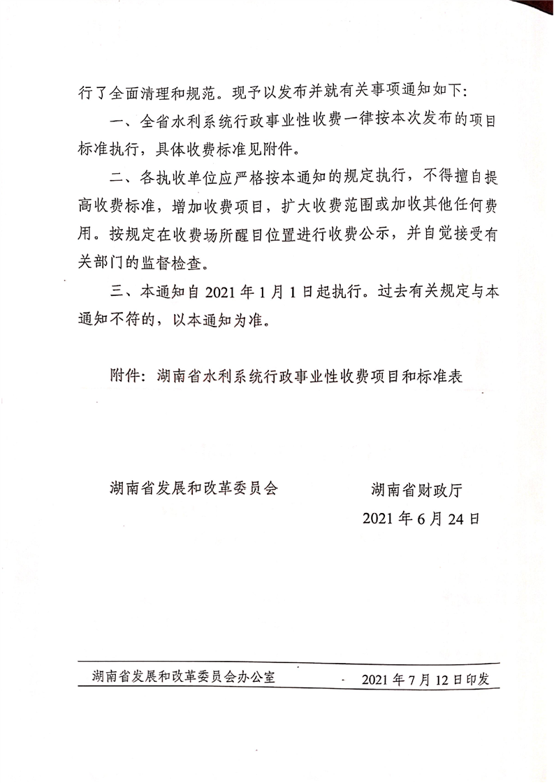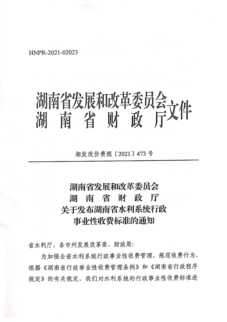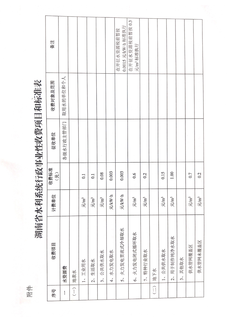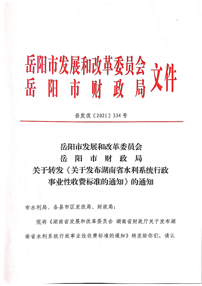 关于转发《关于发布湖南省水利系统行政事业性收费标注的通知》的通知