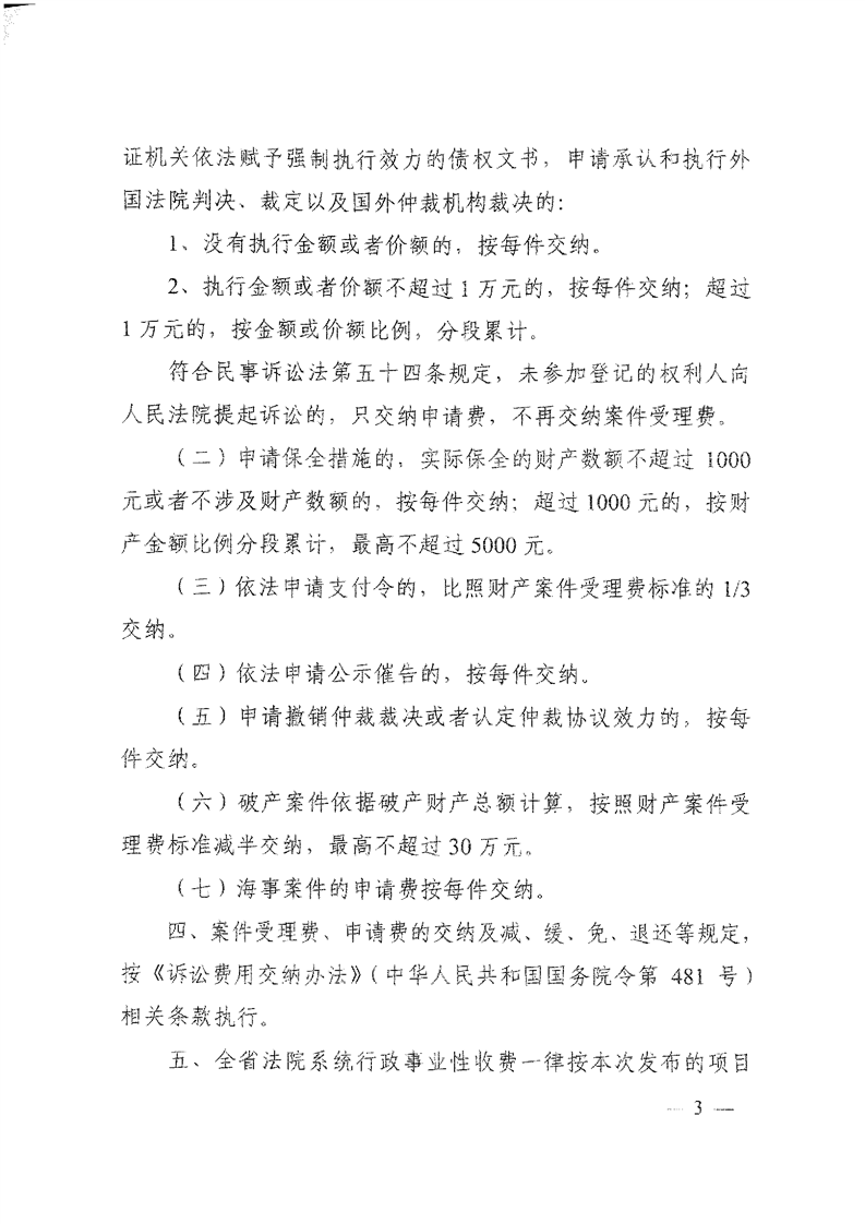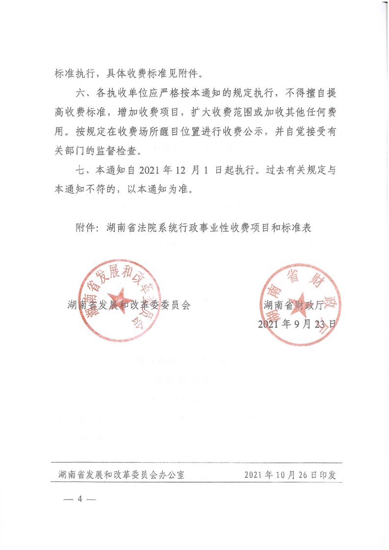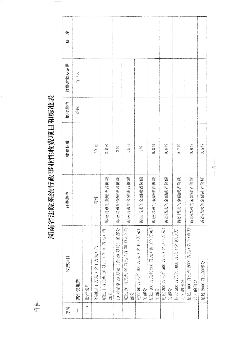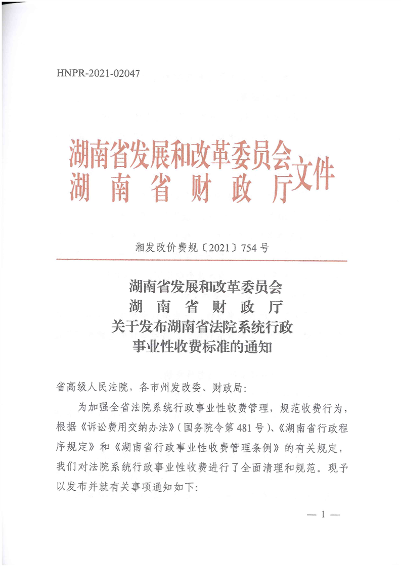 关于发布湖南省法院系统行政事业性收费标准的通知