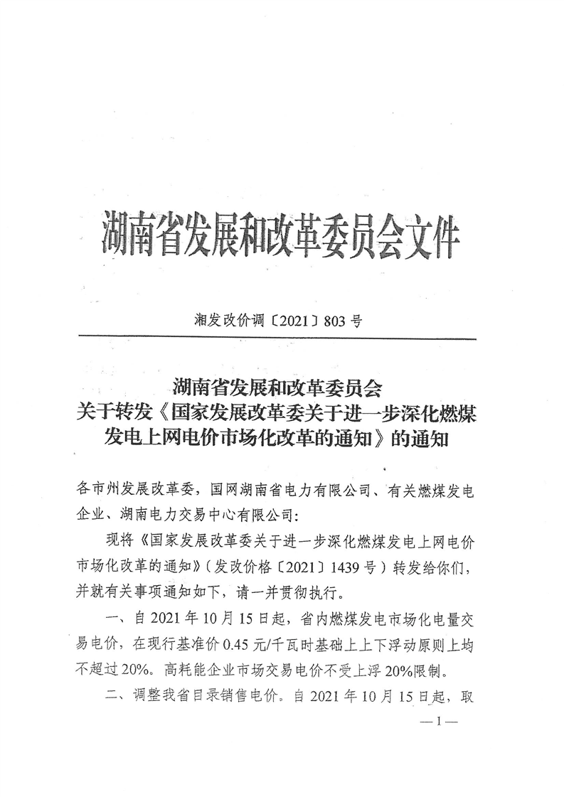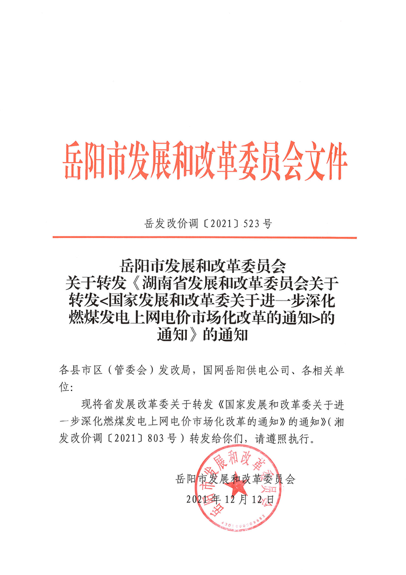 关于转发《湖南省发展和改革委员会关于转发_国家发展和改革委关于进一步深化燃煤发电上网电价市场化改革的通知_的通知》的通知
