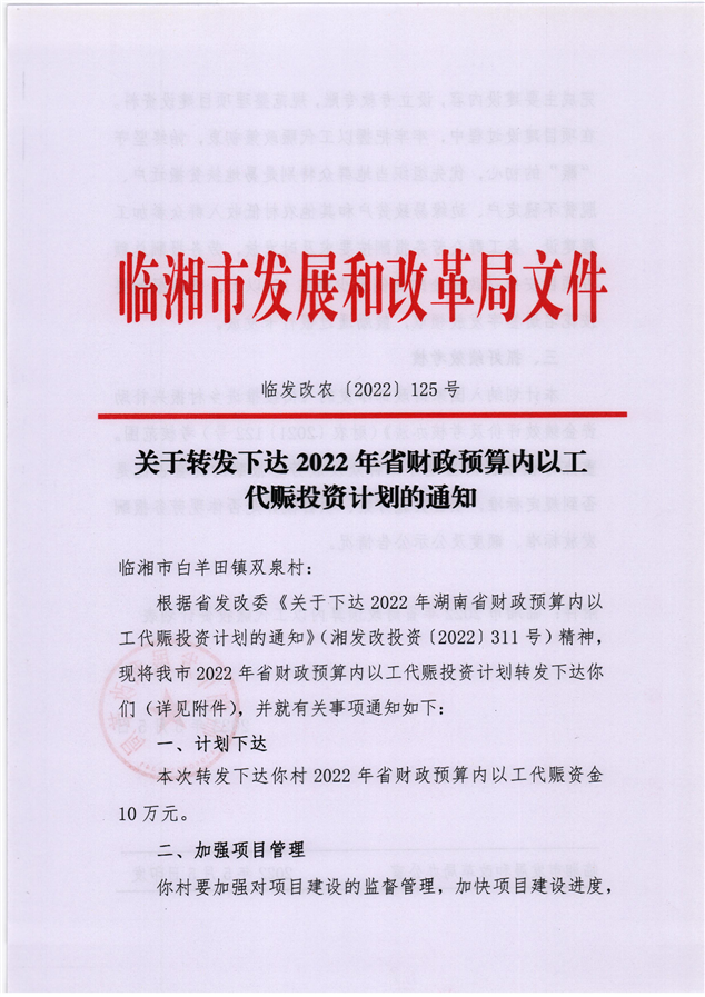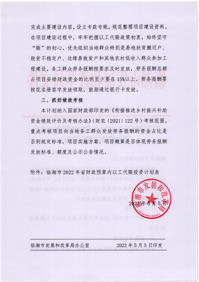 关于转发下达2022年省财政预算内以工代赈投资计划的通知