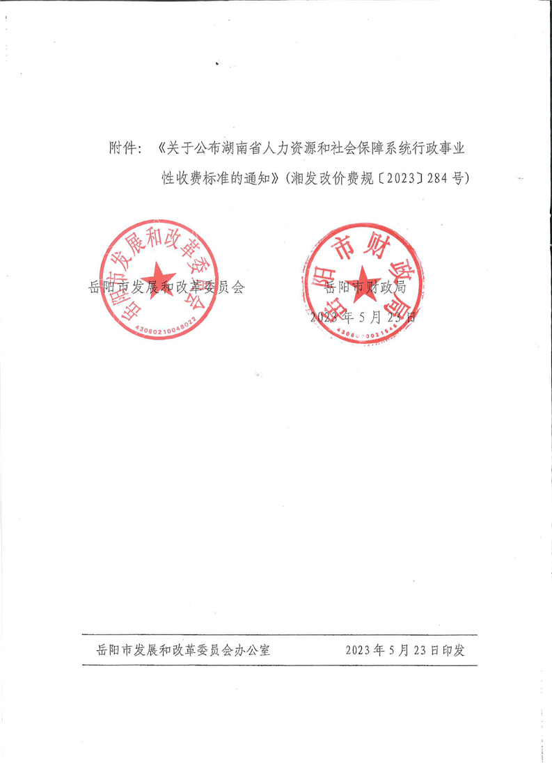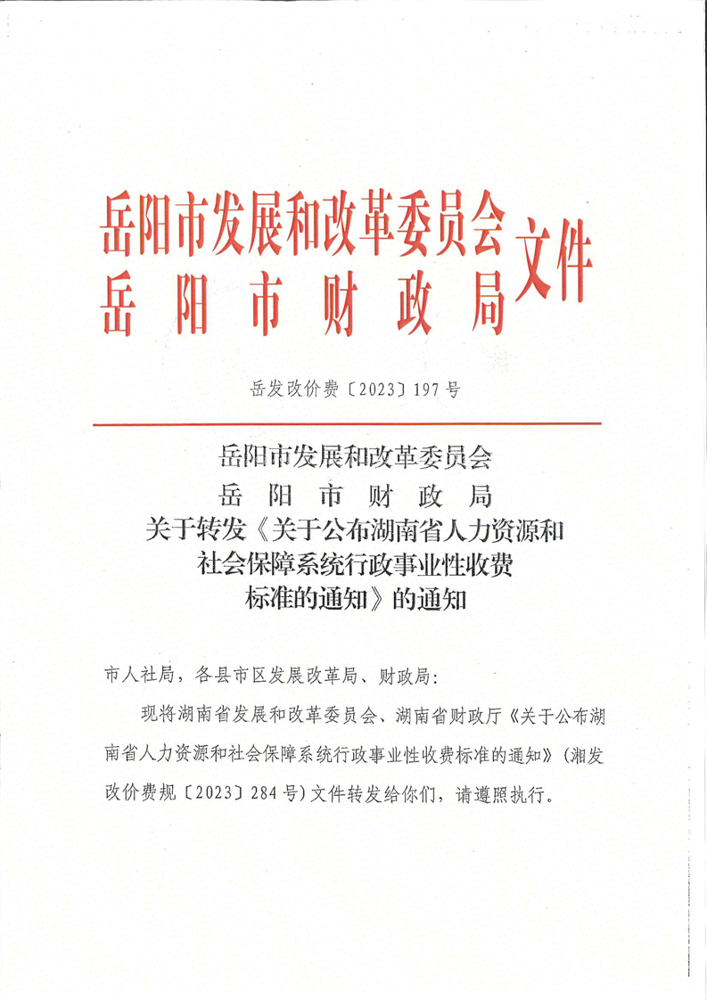 岳发改197号(人力资源和社会保障事业性收费标准的通知)(扫描件)